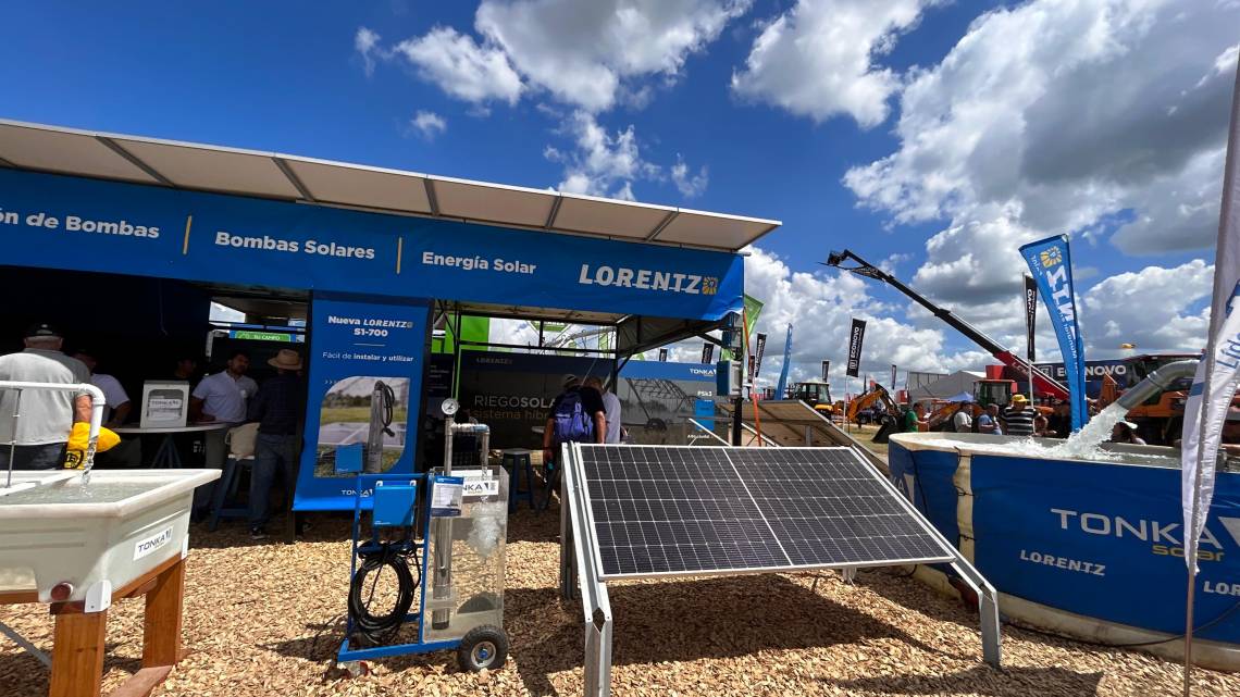 En diálogo con Ecobiz, Federico Chevallier Boutell, Gerente General de Tonka, detalló la innovación presentada en Expoagro 2025: un mismo parque de paneles solares diseñado no solo para alimentar la bomba de extracción de agua, sino también para motorizar el desplazamiento de la maquinaria de riego por pivot. Esta doble funcionalidad permite a los productores operar sistemas de riego completos de forma 100% solar y autónoma, eliminando la dependencia de la red eléctrica y el alto costo del diésel utilizado en grupos electrógenos.